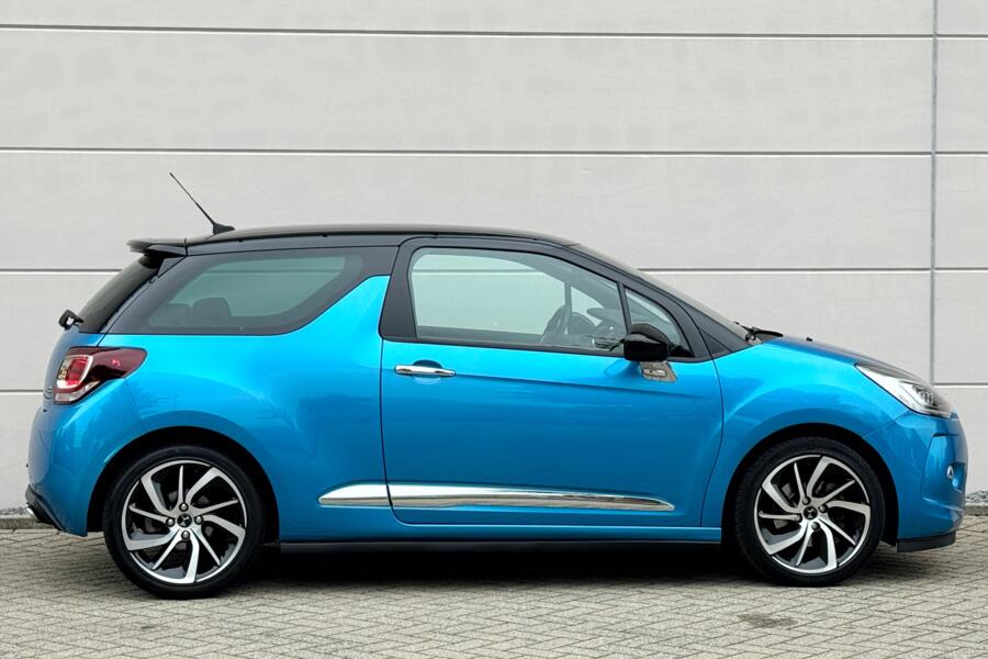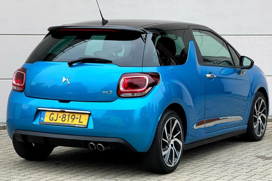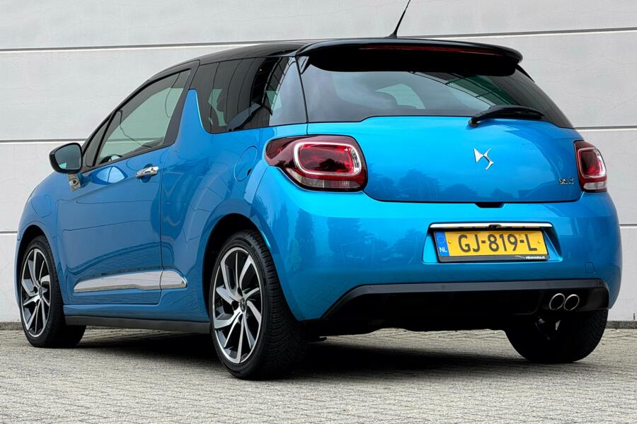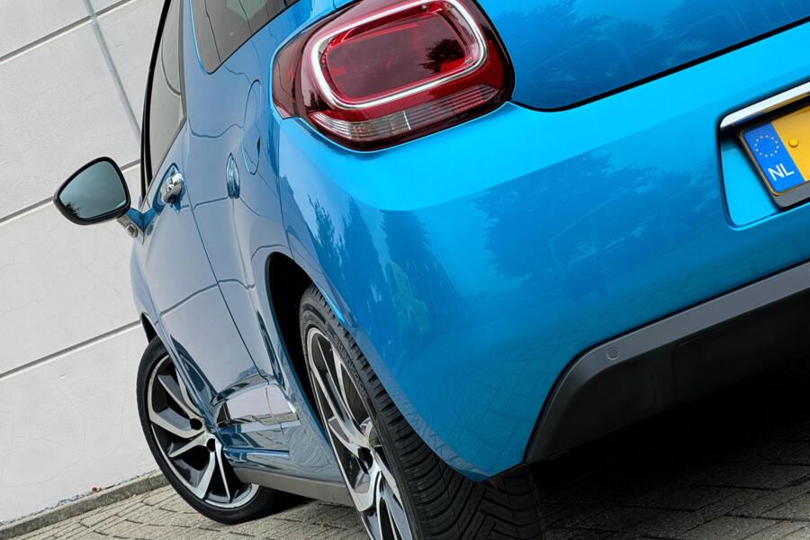Fraaie DS 3 in de Sport Chic uitvoering. Uitgevoerd in de two tone kleurstelling Blue Belle Ile Metallic met Noir Onyx dak. De 17 inch lichtmetalen velgen maken het plaatje helemaal compleet!